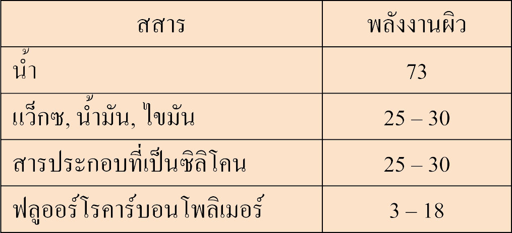 ผ้าที่มีการตกแต่งด้วยสารกันน้ำที่เป็นแว็กซ หรือ ซิลิโคน ก็จะให้ผลการกันน้ำ แต่จะไม่มีผลในเรื่องการกันน้ำมัน เพราะ ถือว่าพลังงานผิวบนผ้าเท่ากัน ถ้ายังมีความแตกต่างกันมากระหว่าง พลังงานผิวของ ๆ เหลว และพื้นผิวของผ้า ก็จะทำให้เกิดการต้านทานที่ดีเยี่ยม จะสังเกตได้ว่าสาร ฟลูออร์โรคาร์บอนโพลิเมอร์ มีค่าพลังงานผิวที่ต่ำมาก ถ้ามีการประยุกต์ใช้บนสิ่งทอ ไม่เฉพาะแต่การกันน้ำที่ดีเยี่ยมเท่านั้น แต่ยังกันน้ำมันได้ดีมาก ๆ อีกด้วย คุณสมบัติเหล่านี้ได้แสดงความชัดเจนไว้แล้ว ตามตารางด้านบนว่า พลังงานผิวของสารฟลูออร์โรคาร์บอนต่ำกว่าน้ำ หรือสารไฮโดรคาร์บอน (แว็กซ หรือซิลิโคน) ผลิตภัณฑ์ ผ้าชุดเครื่องแบบทหาร กันน้ำ กันน้ำมันและกันเปื้อน ตกแต่งด้วยสารเคมีประเภท TEFLON ลงบนผ้าเป็นนวัฒกรรมนาโนเทคโนโลยีชั้นสูง เพื่อทำให้ชุดปฏิบัติการสามารถ กันน้ำ กันน้ำมันและกันเปื้อนได้ และมีความคงทนสูงกว่าชุดปฏิบัติการทั่วไป เป็นสารจำพวก ฟลูออร์โรคาร์บอน (FLUOROCAREON) และยังมีคุณสมบัติป้องกันไม่ให้คราบเปื้อนฝังแน่น ทำความสะอาดง่ายทนทานต่อการซักได้ดี นวัฒกรรมนาโนเทคโนโลยี ทำให้รักษาคุณสมบัติเดิมของผ้าไว้ได้ดี ผ้ายังคงระบายความร้อนได้ดี สวมใส่สบาย