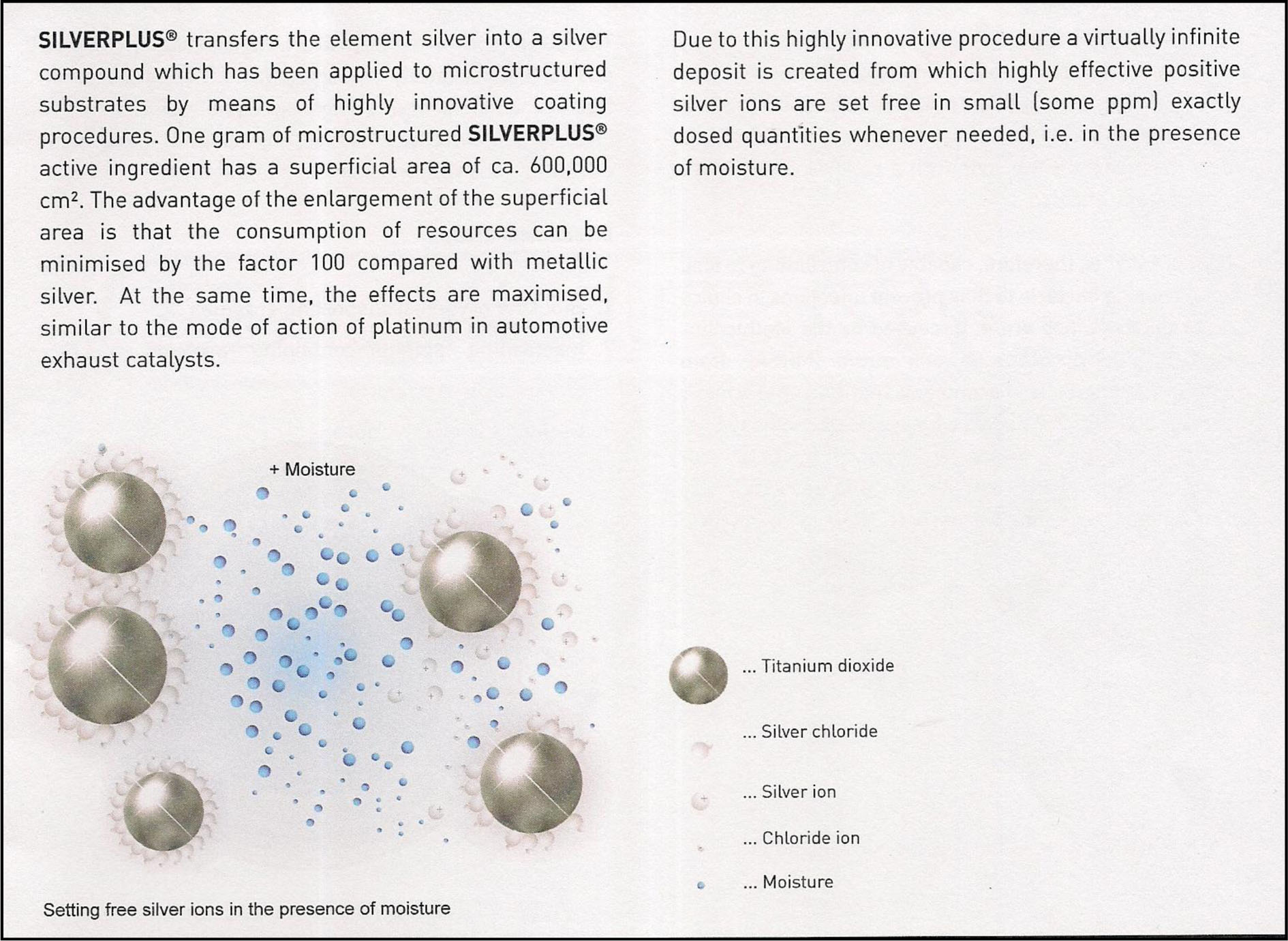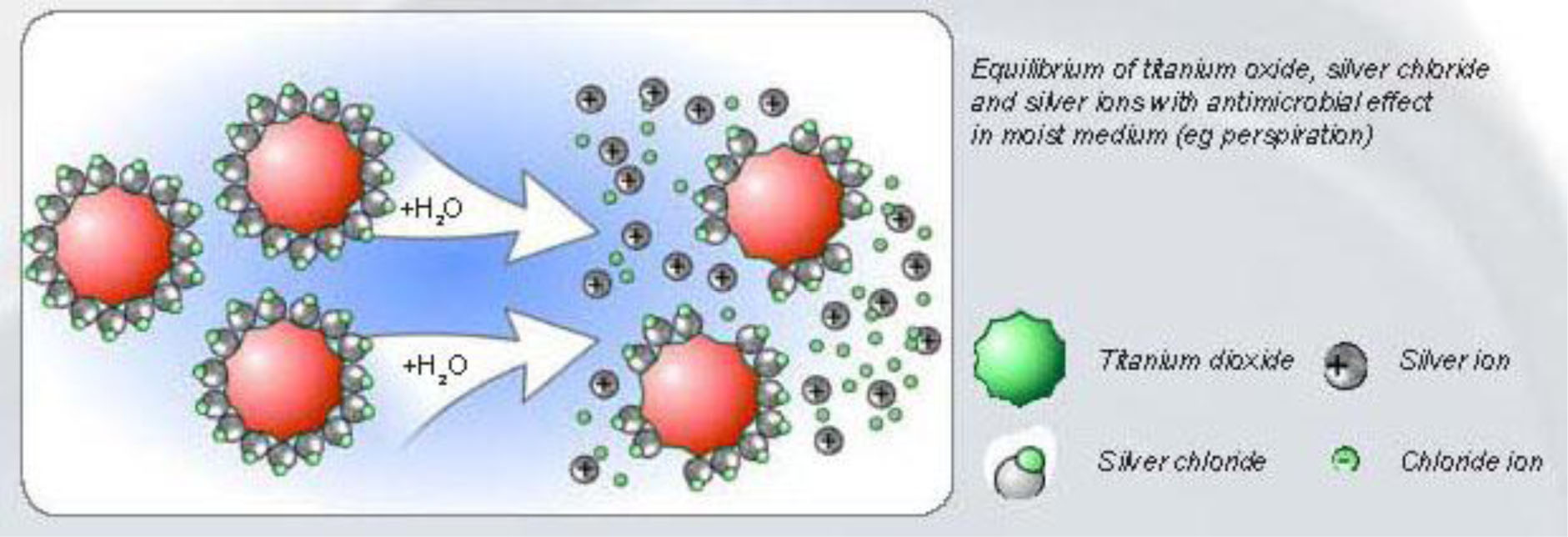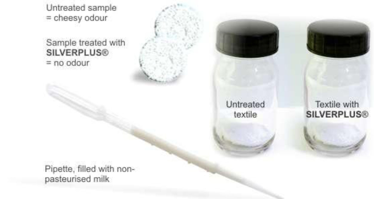ผลิตภัณฑ์สิ่งทอที่นำไปเป็นชุดปฏิบัติงาน ไม่ว่าจะมาจากเส้นใยธรรมชาติ หรือเส้นใยสังเคราะห์ จะเกิดกลิ่นอับชื้นไม่พึงประสงค์ หลังจากมีการใช้งานในช่วงระยะเวลาหนึ่ง ความชื้นและอุณหภูมิที่เหมาะสมบนร่างกายมนุษย์ เหมาะสมอย่างยิ่งสำหรับเชื้อแบคทีเรีย เมื่อแบคทีเรียมีการย่อยสลาย เหงื่อที่อยู่บนร่างกายเราจะทำให้เกิดกลิ่นอันไม่พึงประสงค์ การตกแต่งสารต้านเชื้อแบคทีเรีย SILVER PLUS จะทำให้ปัญหานี้หายไป โดยสารที่เป็นตัวออกฤทธิ์ ใน SILVER PLUS จะเป็น SILVER ION (AG+) ซึ่งเกาะอยู่บน TITANIUM DIOXIDE เมื่อร่างกายเรามีความชื้น SILVER ION จะหลุดออกจาก TITANIUM DIOXIDE เพื่อทำหน้าที่ตัดวงจรไม่ให้แบคทีเรียเกิดการเจริญเติบโต สุดท้ายจะไม่มีการขยายตัวเพิ่มของแบคทีเรียขณะที่แบคทีเรียตัวเก่าก็ตาย จึงทำให้สามารถแก้ไขกลิ่นอับชื้นไม่พึงประสงค์ที่เกิดขึ้นได้